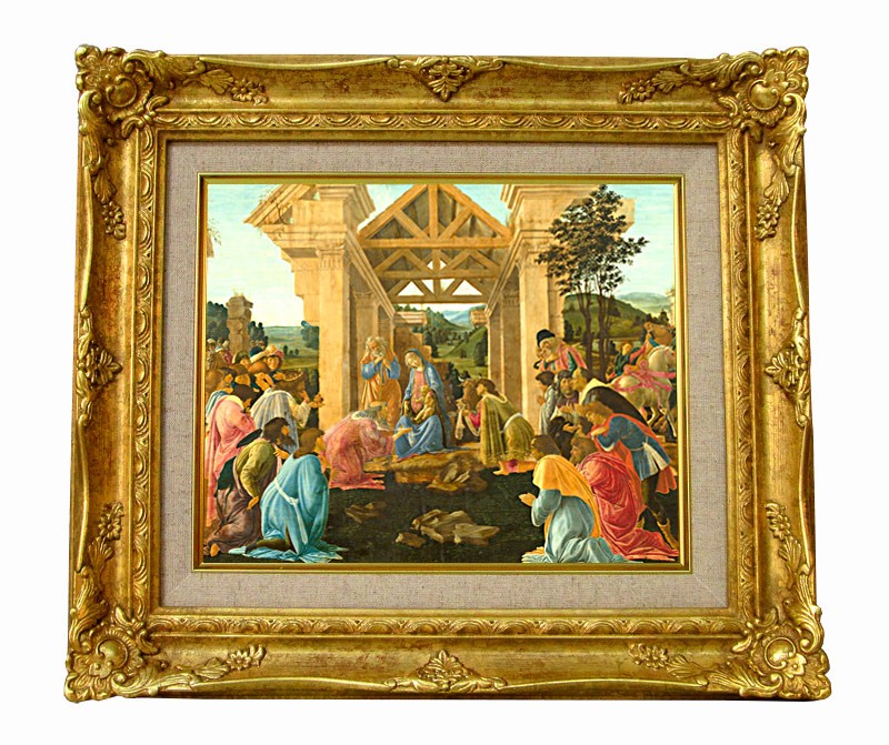 世界の名画 ポッティチェリ 東方三博士の礼拝 ジクレーキャンバス複製画 豪華額装品