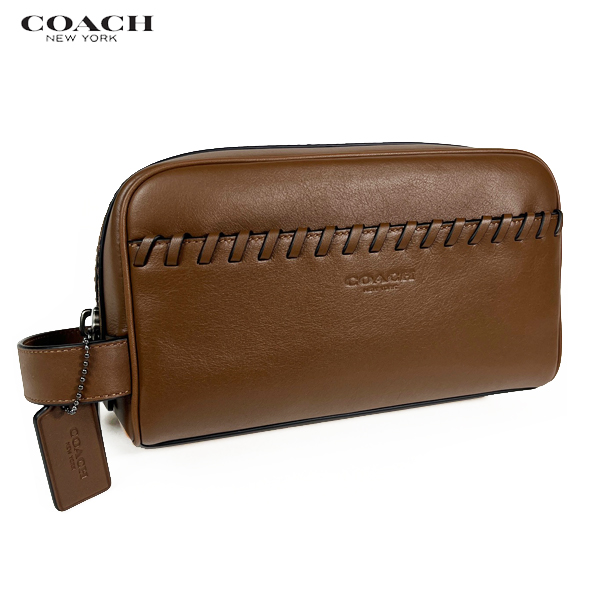 COACH コーチ アウトレット メンズ バッグ クラッチバッグ セカンドバッグ ポーチ SMALL TRAVEL KIT WITH WHIPSTITCH スモール トラベル キット ホイップステッチ CBE03 GUNMETAL/SADDLE サドル QB/SD レザー 新作 新品 セール 国内発送