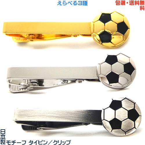 サッカー ボール 日本製 モチーフ タイピン/ クリップ× えらべる3色+ プレゼント用 ギフトケース【包装・送料無料】
