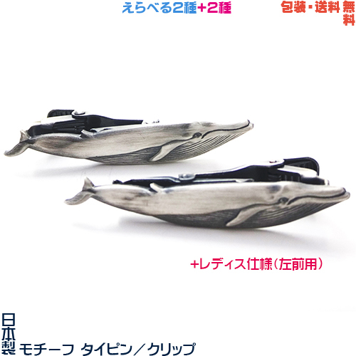 クジラ 鯨 シロナガスクジラ 日本製 モチーフ タイピン/ クリップ+ プレゼント用 ギフトケース【メンズ or レディス】【包装・送料無料】
