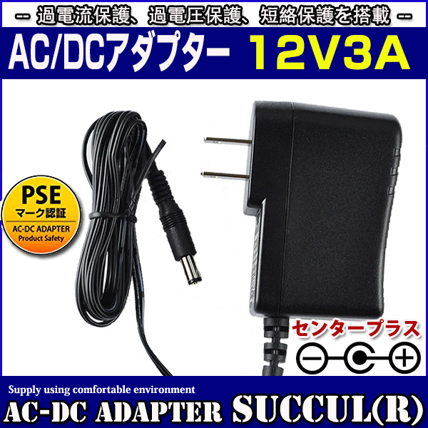 汎用ACアダプター 12V 3A 最大出力36W PSE取得品 出力プラグ外径5.5mm(内径2.1mm) 1年保証付 (LEDテープライトに使用可)