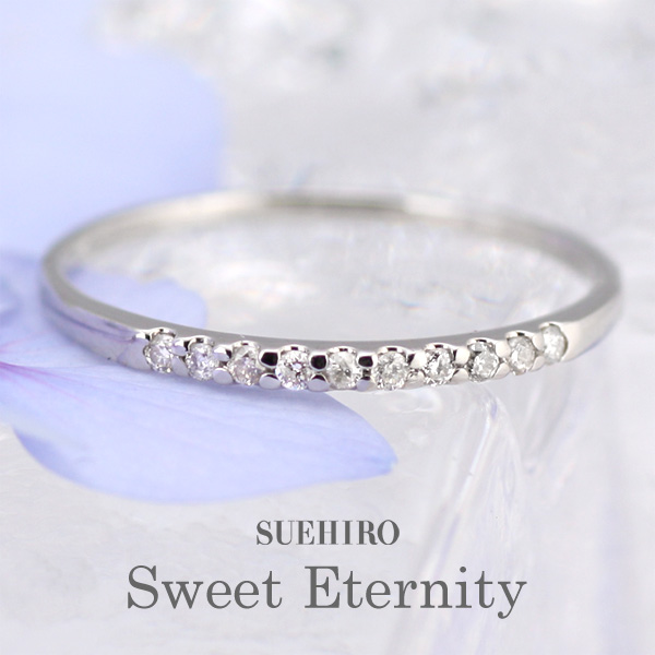 結婚指輪 マリッジリング ペアリング プラチナのラインがしなやかに そしてシンプルに、ダイヤモンドの輝きが流れるハーフ エタニティ リング可憐に上品に流れるプラチナのラインにきらめき流れる0.1カラットの10粒のダイヤモンド。欲しかったハーフエタニティリングは 10個のダイヤモンドで記念 としても マリッジリング としても 記念のエタニティリング としてもこちらの商品で規格外サイズご希望の場合は、ご注文時、ご要望欄にご希望サイズをご記入ください。(規格外ご対応可能サイズ5・6・8・10・12・14・15・16)規格外サイズのご用意には多少お時間がかかります。送料無料 保証書付素材 プラチナ900 ダイヤモンド 0.10ctリングトップ部分最大幅 約 1mm セール