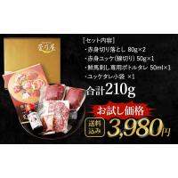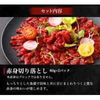| 商品内容 | ■お試し赤身切り落としセット ・赤身切り落とし80g×2 ・赤身ユッケ(線切り)50g×1 ・鮮馬刺し専用ボトルタレ50ml×1 ・ユッケタレ小袋×1 |