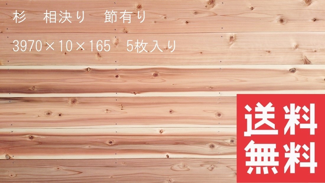 杉 羽目板 相決り加工 節有り 3970mm×10mm×165mm 5枚入 無垢材 壁板 DIY リフォーム