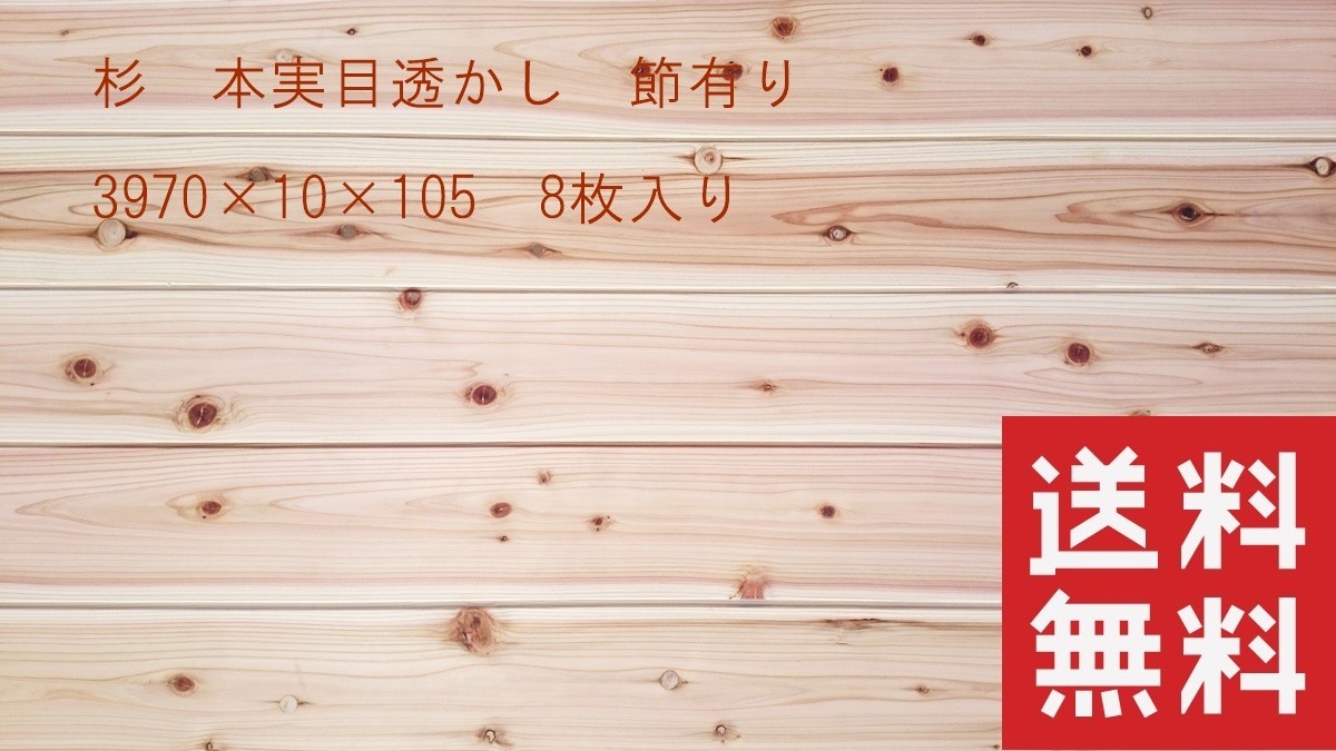 杉 羽目板 本実目透かし加工 節有り 3970mm×10mm×105mm 8枚入 無垢材 壁板 DIY リフォーム