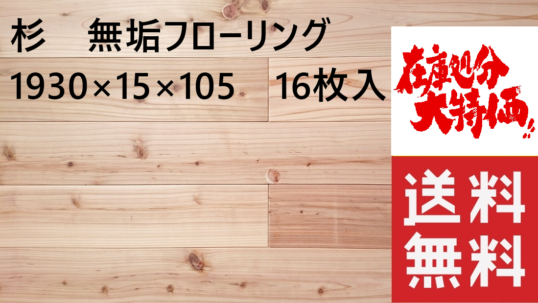 杉 フローリング 本実加工 節有り エンドマッチ付き 1930mm×15mm×105mm 16枚入 無垢材 床材 DIY リフォーム
