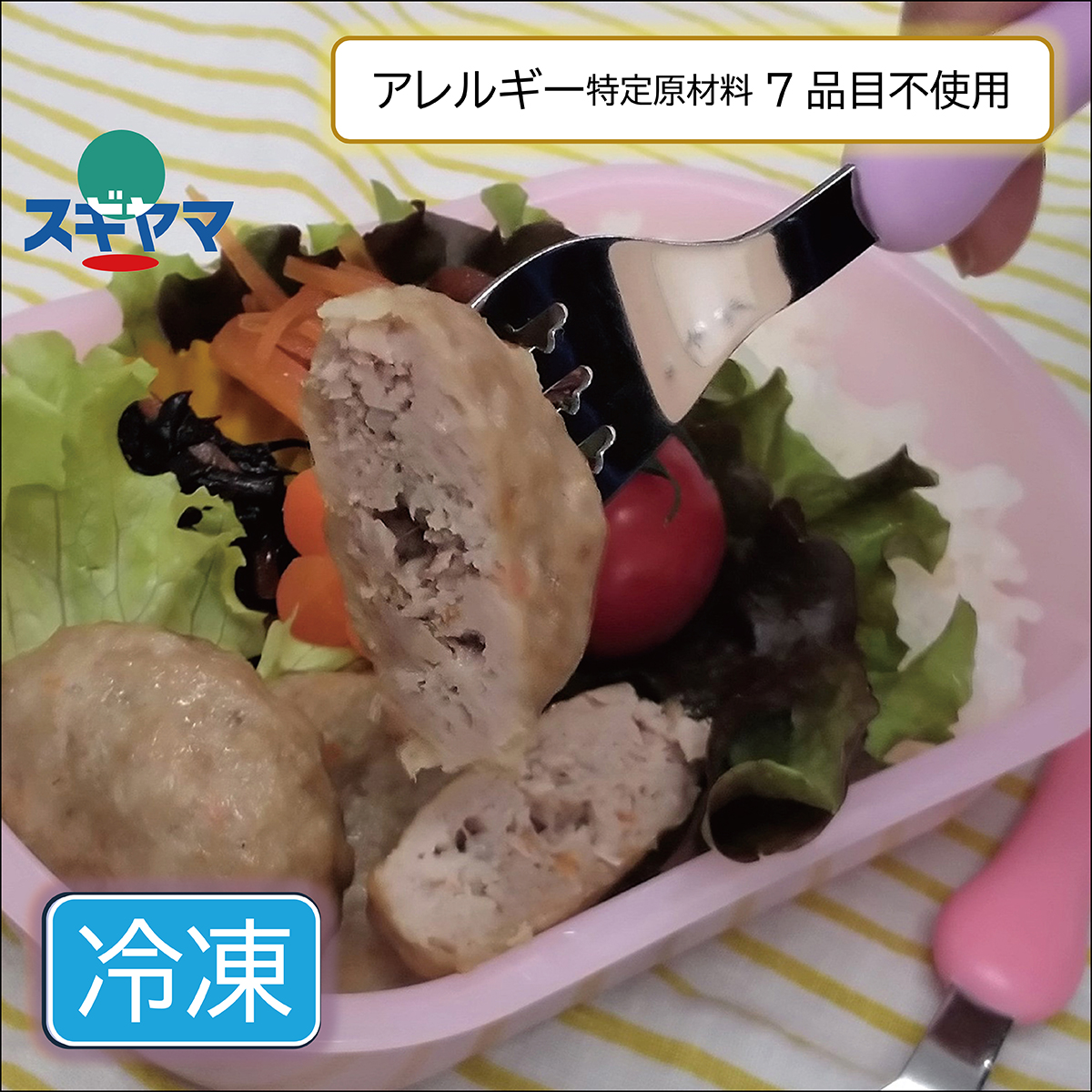 卵、乳、小麦などアレルギー特定原材料7品目を使わずに作ったハンバーグです。山形県産庄内豚100%使用。お弁当にも便利なミニサイズです。電子レンジで温めるだけでOK。