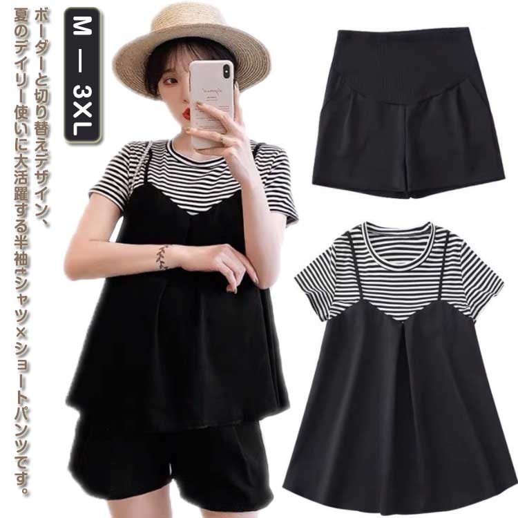 | マタニティママから授乳ママまで!ボーダーと切り替えデザイン、夏のデイリー使いに大活躍する半袖tシャツ×ショートパンツです。 パンツウエストにはアジャスト機能付き、妊娠初期から産後まで履けるデザインです。 お腹周りもお腹の大きさに合わせて、伸縮できるような素材を使用、お腹周りにフィットしお腹を優しくサポートします。 きれいめもカジュアルも着回し上手な万能アイテムで着〓せと体型カバーをさらっとこなす優秀なセットアップです。 | |