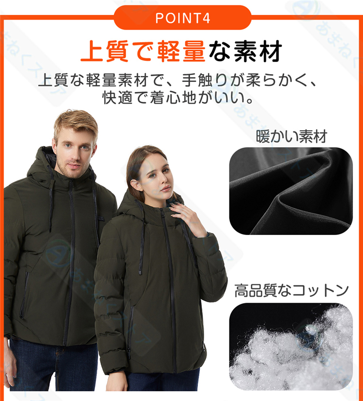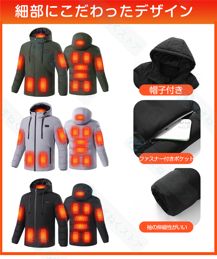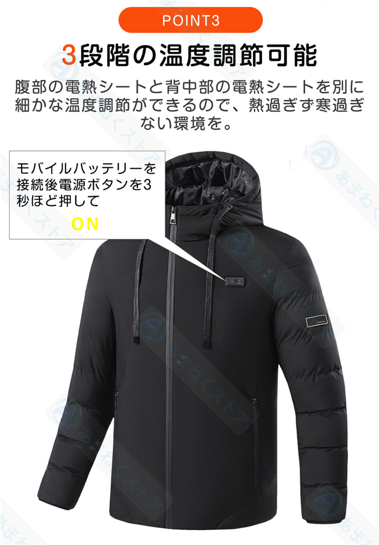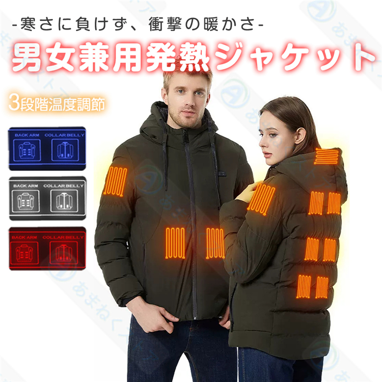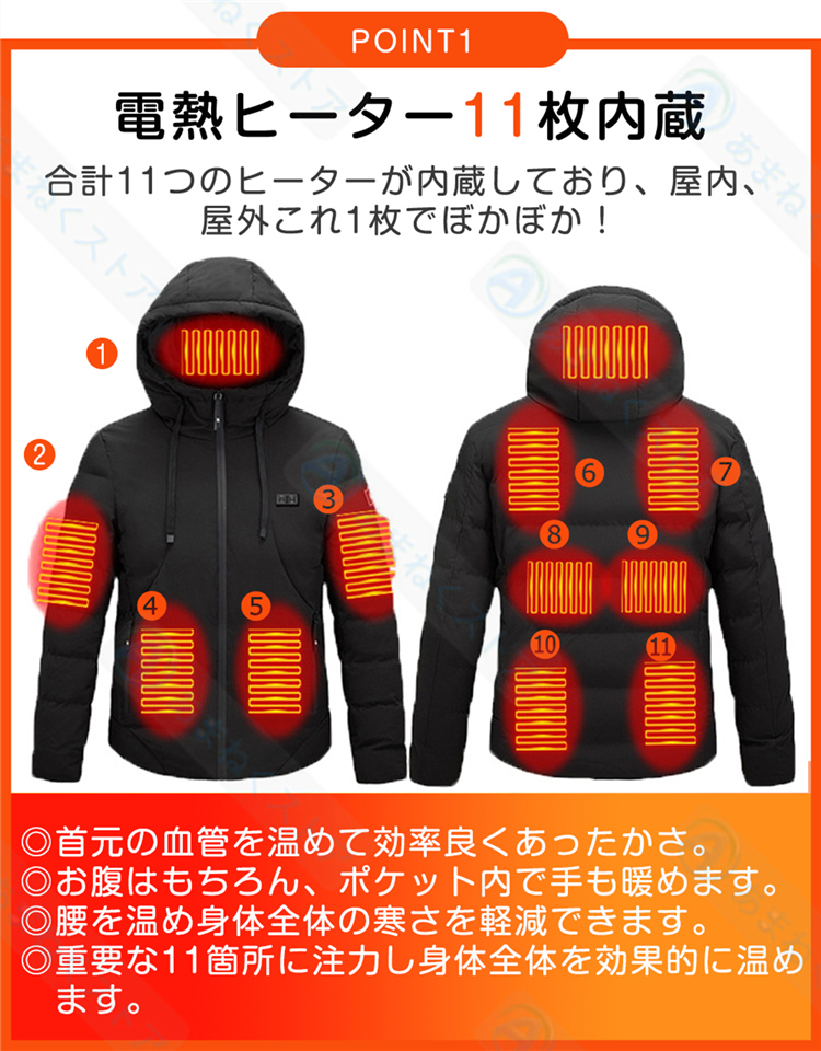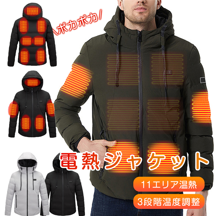 電熱ジャケット ヒータージャケット ジャケット コート ヒーター11枚内蔵 速暖 3段温度調整 区域温度調整可能 ダブルスイッチ 水洗い 作業服 男女兼用 防寒対策