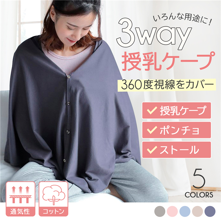授乳がうまくいかない、睡眠時間が削られる、授乳できる場所がないと気軽に外出もできないといった悩みをゆったりケープ1枚あれば気兼ねなく授乳もできるため育児を楽しむ環境づくりにはマストアイテム。