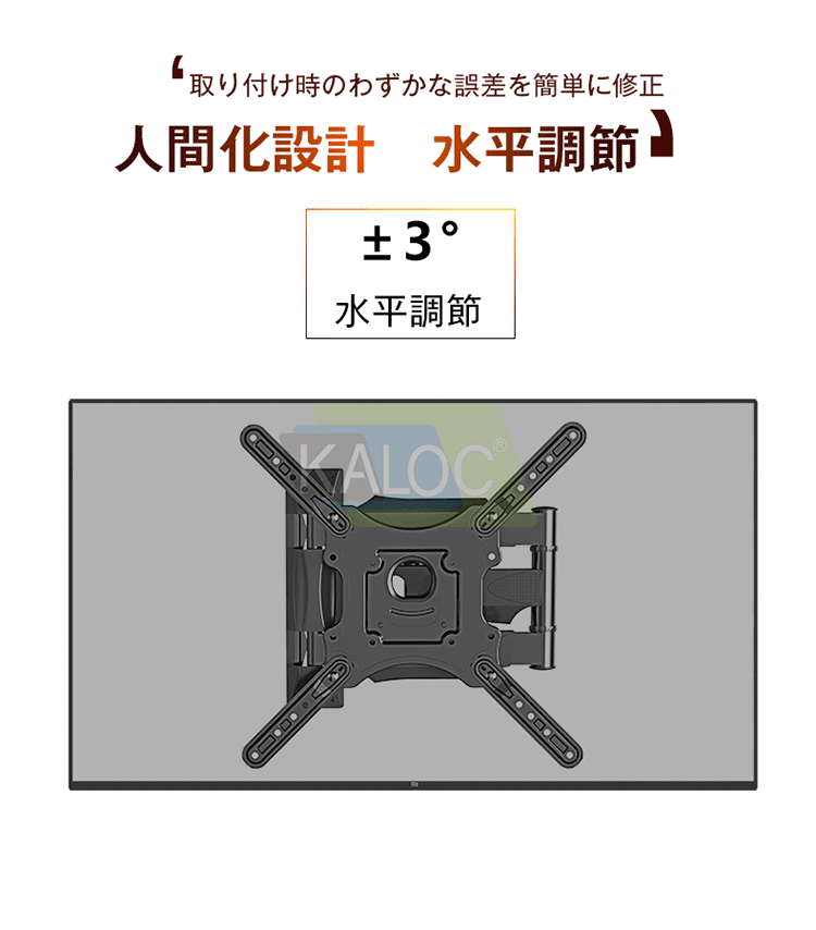 【取付簡単・安心安全に】:取付必要な部品が揃っていて、取付は簡単です。※ナット・ネジ類などの備品は備えていますが、万が一必要な部品が不足していた場合はカスタマーサービスにご連絡くださいようお願いいたいします。当店のすべて商品は試験を行いました。実験後もネジの緩みや金具の破損も無くテレビを強固に支えているという結果になりました。