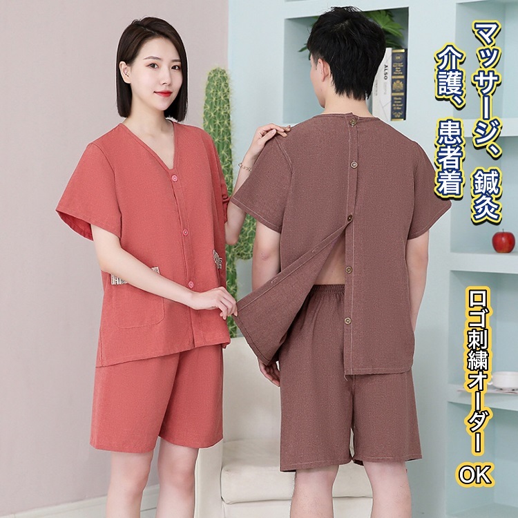 鍼灸服 サロン マッサージ服 サウナ チムジルバン 服 お灸 鍼 患者着 患者服 上下セット 乾きやすい サウナ服 パジャマ 入浴服 寝巻 部屋着 ルームウェア セットアップ ゆったり 綿 オープンバック 理学療法服 鍼灸院