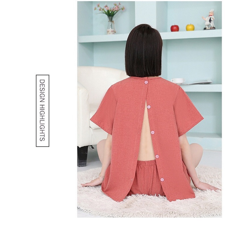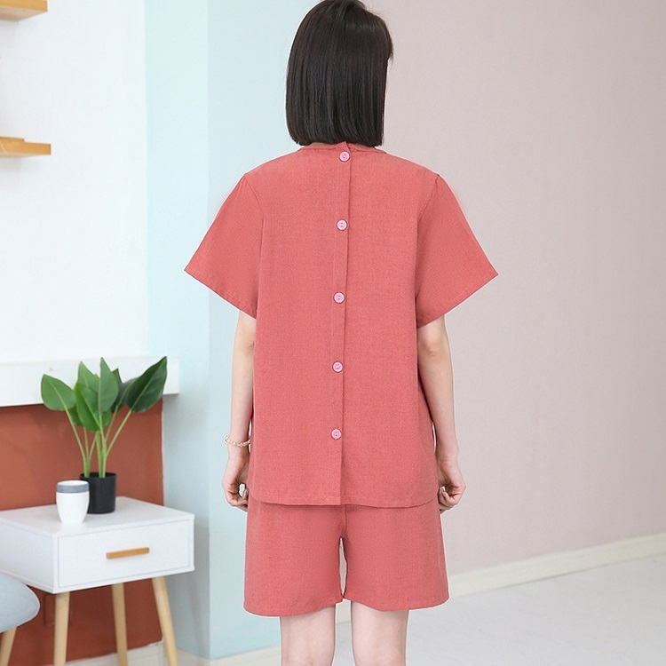 鍼灸施術に便利な上下セット 患者着 前開き 後ろ開き ルームウェア セットアップ ゆったり 綿 オープンバック 理学療法服 鍼灸院