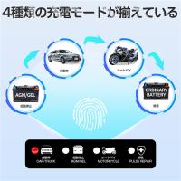 【4種類充電モード】モードボタン(MODE)を押して、自動車、起動停止AGM/GEL、オートバイ、修復4種類充電モードからお選びいただけます。状況に応じて、適合な充電モードを簡単に選択できます。