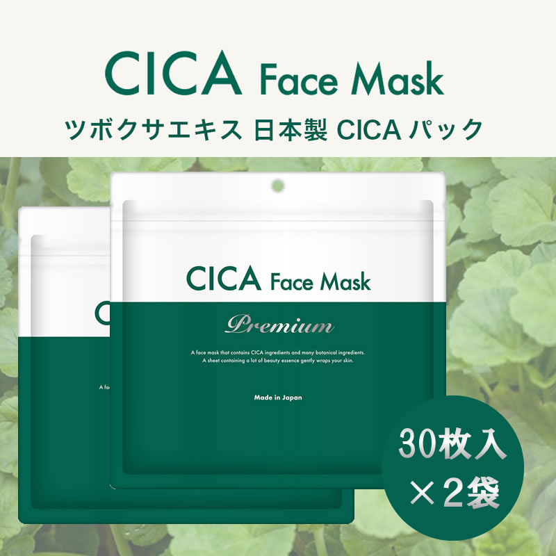 2袋 CICA パック プレミアム30P 大容量 60Pセット ツボクサエキス 日本製 シカ フェイスパック フェイスマスク シートマスク メール便配送