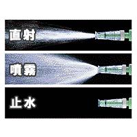 ・水撒きの際ノズルの回転によって水の吐水パターンを変えられる散水ノズルです。別売りホーセンドを使用し水道ホースに接続します・別売り継手の口金差込み部分は抜けにくい4本爪仕様に改良され、抜け強度が従来品の約2倍程度に強度UPしました。散水ノズルはワンタッチで着脱も可能で回転するのでホースがねじれません・材質:ABS樹脂、CA(セルロースアセテート)、PP・用途:屋外用途のみ、水道ホース端末に取付け、接続継手別売り、、標準口径サイズ用※屋内用途では使用しないでください・適合水道ホース:(ホース内径)11~15ミリ×(ホース外径)16~20ミリ・吐水パターン:噴霧、ストレート、止水の3パターン・取付方法:水道ホース末端をできるだけ直角に切断します。劣化等で変色している場合も切除して使用します。ホーセンドは茶色のナット部をホース側に通した状態で、ホースを差込むタケノコ部にホースを最後まで差込みます。そして茶色のナットを締付け、プライヤー等で軽く締め付けます。最後に散水ノズルを接続し漏水しない事を確認します・必要工具類:水道ホース、プライヤー等が必要・セット内容:散水ノズル、ホーセンド