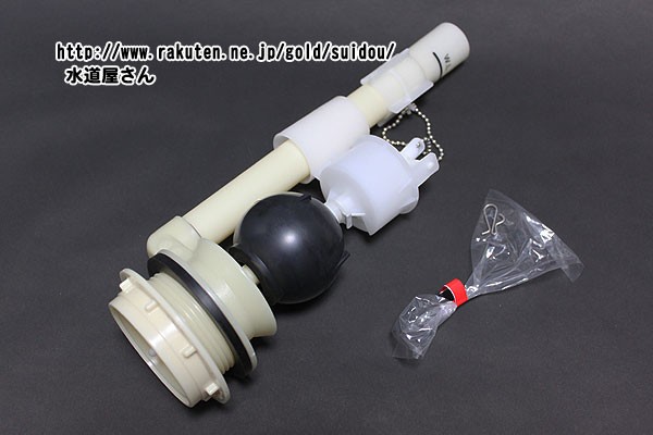 ・ロータンク内の排水弁部で、オーバーフロー管の破損等でタンク内部水が漏水する場合にタンクを取外してフロート弁部を丸ごと取換えます・アメージュC便器でタンク品番がGDT-2820、DT-2820、GDT-2520、DT-2520に適合※同じシリーズ便器でもタンク品番で適合するフロート弁が変わります。必ずタンク品番をご確認ください・必要工具:プラス・マイナスドライバー、モンキーレンチ、13ミリのスパナかレンチ、口開きの大きいレンチ類、手袋、雑巾等が必要・まず水を止めタンク内の水を排水します。ふたを外して給水管の接続ナットを外し取付けボルトのナットを外しタンクを外します。排水弁部の締付けナットを口開きの大きいレンチ類で外して、新しい部材と取替えます。取付けボルトの緩みがあれば、内部からプラスドライバーで押さえながら13ミリレンチで増し締めします。タンク取付けでは便器側の水受け部材を確実に弁部排水口内に入る事を確認しながら乗せます。確実に入らないと洗浄時に漏水します。ナットの締付けでは締めすぎると陶器や弁部が割れますので適度な締付けをしてください。水張り後は各箇所の漏水の有無を必ず確認してください・セット内容:弁部一式、説明書はなし