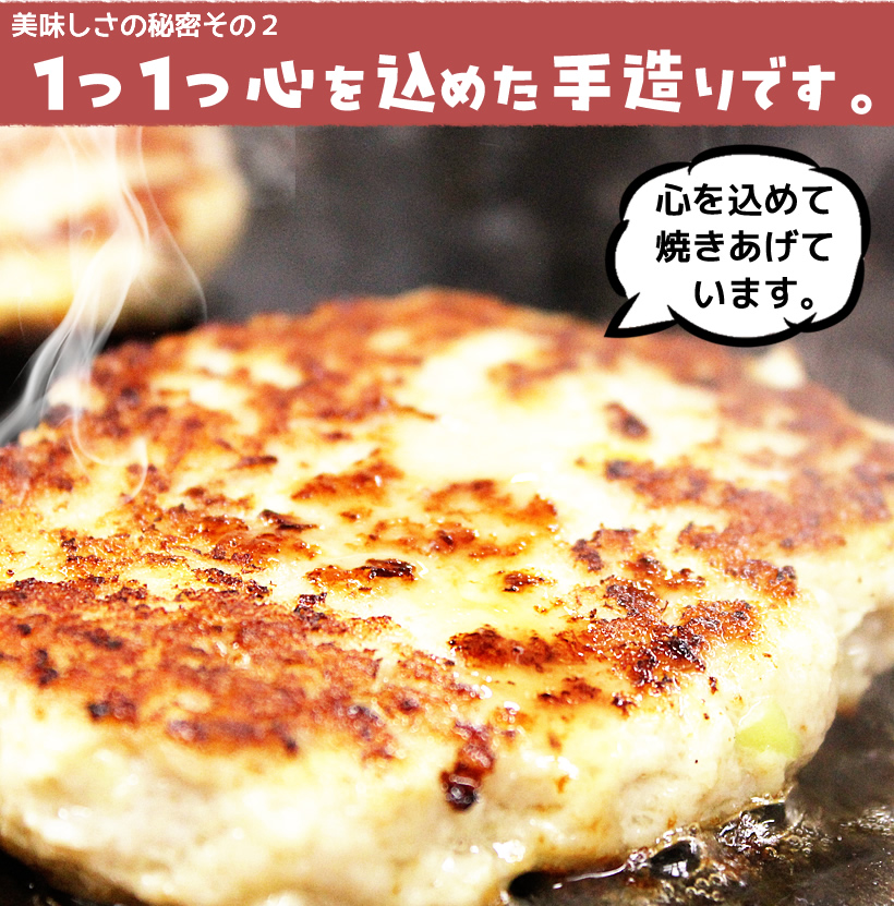 鶏肉専門店が贈る自家製手ごね手焼きハンバーグを3枚入り×5袋の計15枚分お届けします。