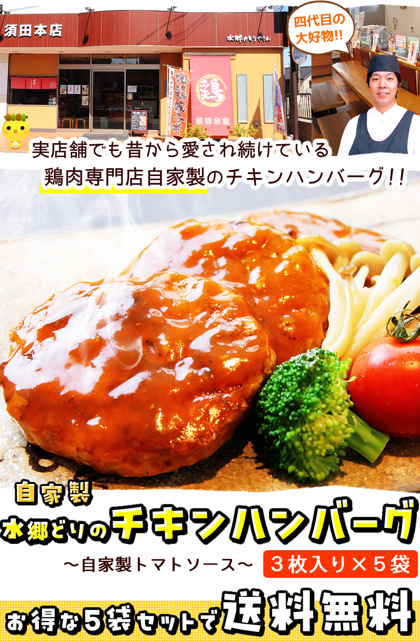 【商品内容】水郷どりのチキンハンバーグ(3枚)×5袋