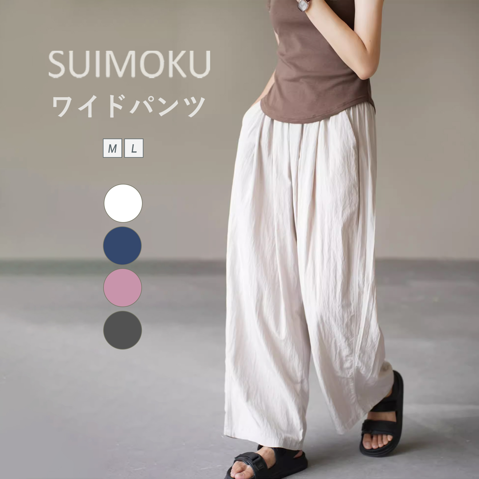 涼やかワイドイージーパンツ オリジナル ストレート ワイドパンツ ウエストゴム春 夏