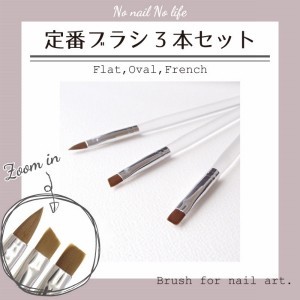ネイル定番ブラシ3本セット フラット オーバル フレンチ