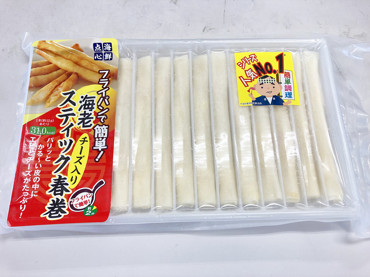 原材料 えび(ベトナム産など)、チーズ(乳成分を含む)、大豆油、竹の子、でん粉、砂糖、ごま油、食塩、胡椒、皮(小麦粉、食塩、大豆油)/調味料(アミノ酸)