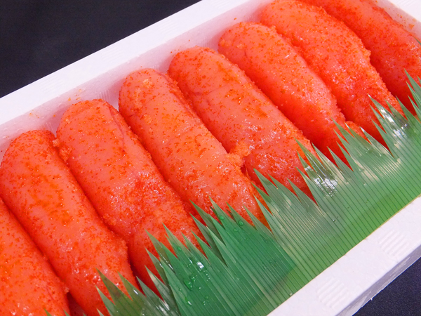 原材料 すけとうたらの卵(アメリカ又はロシア産)、食塩、醸造調味料、果糖ぶどう糖液糖、唐辛子、調味料(アミノ酸等)、酸化防止剤(ビタミンC)、酵素、発色剤(亜硝酸Na)、着色料(黄5、赤106)、(原材料の一部に小麦、大豆、ゼラチンを含む)