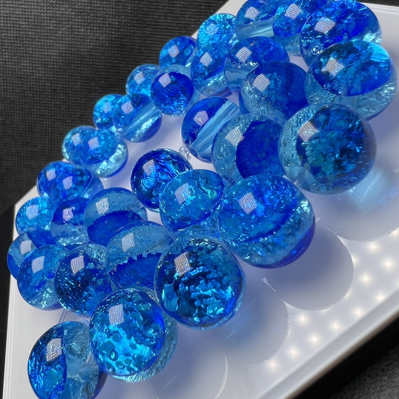 ミヤコマリン 青芯 8mm 連売り 50粒 蓄光ホタルガラス とんぼガラス とんぼ玉 沖縄県宮古島
