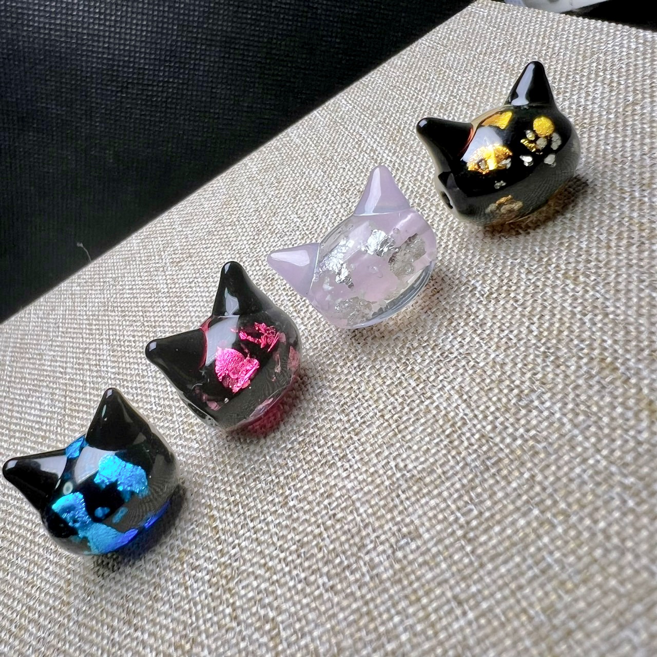 ホタルガラス ネコ 4個セット 12mm*15mm 沖縄 蓄光 夜行タイプ とんぼガラス とんぼ玉 送料無料