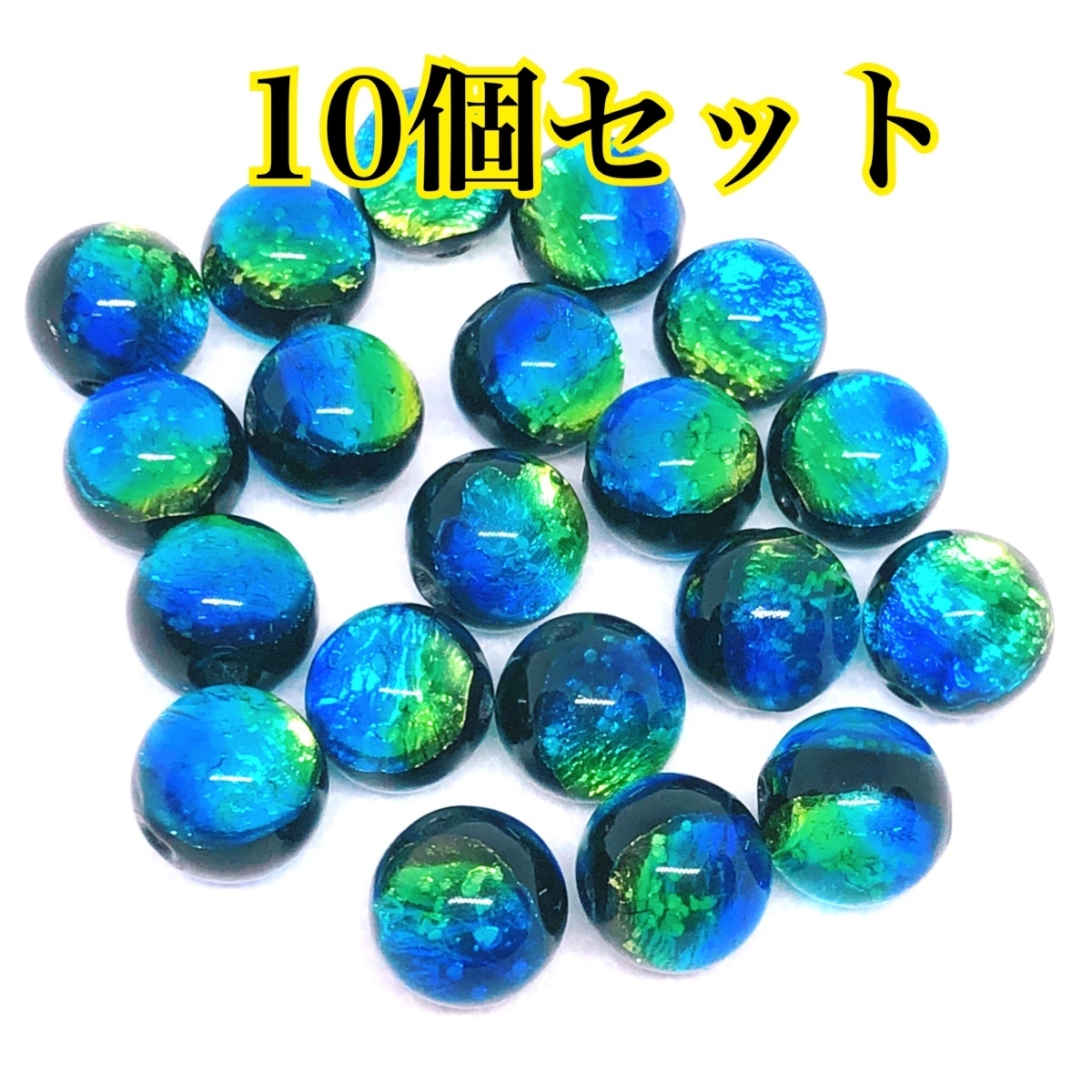 ホタルガラス ケラママリン 8mm±0.5mm 10粒セット 蓄光 とんぼガラス とんぼ玉 ケラママリン 沖縄慶良間諸島
