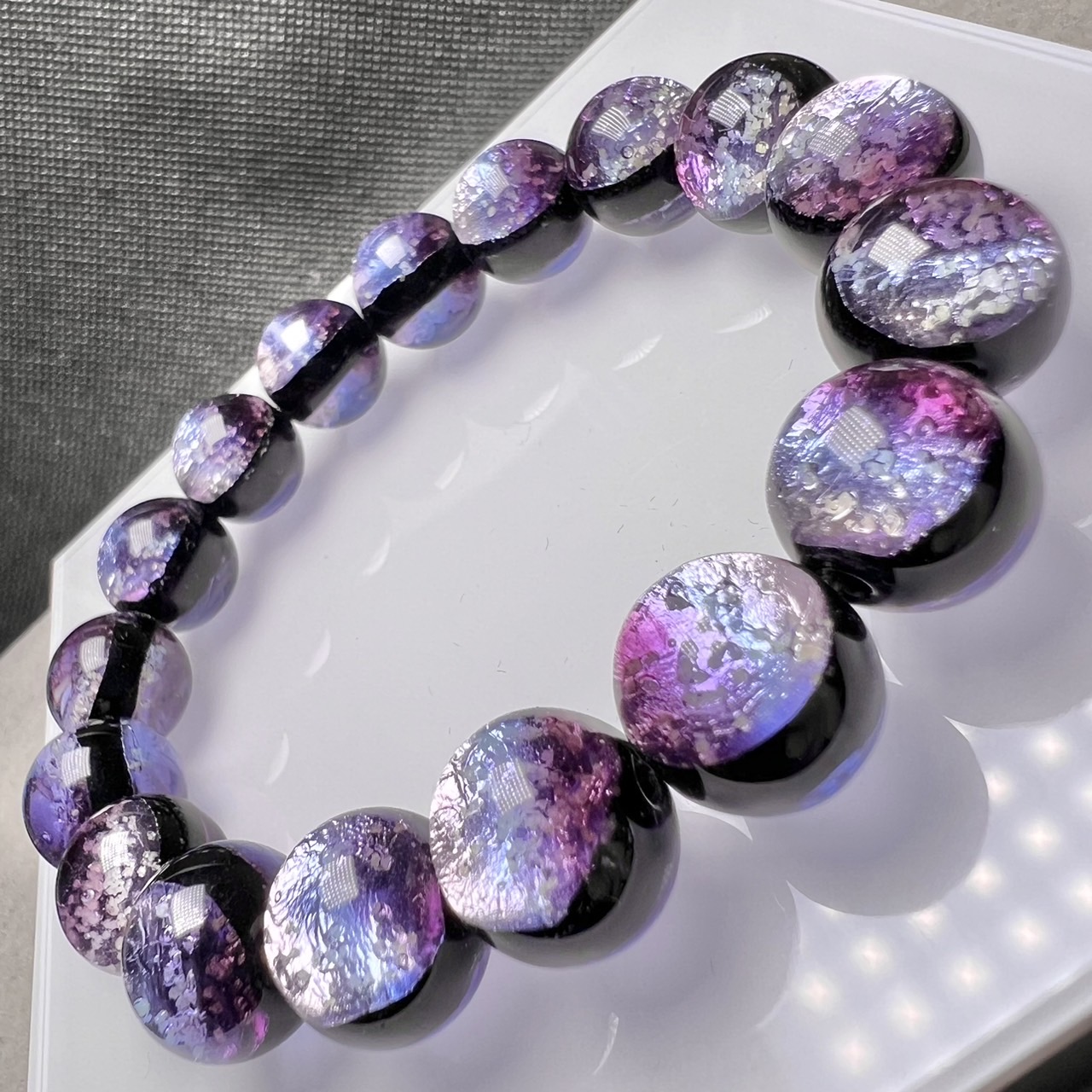 マリンパープル 蓄光 ホタルガラス 12mm ブレスレッド とんぼガラス とんぼ玉 沖縄琉球ガラス