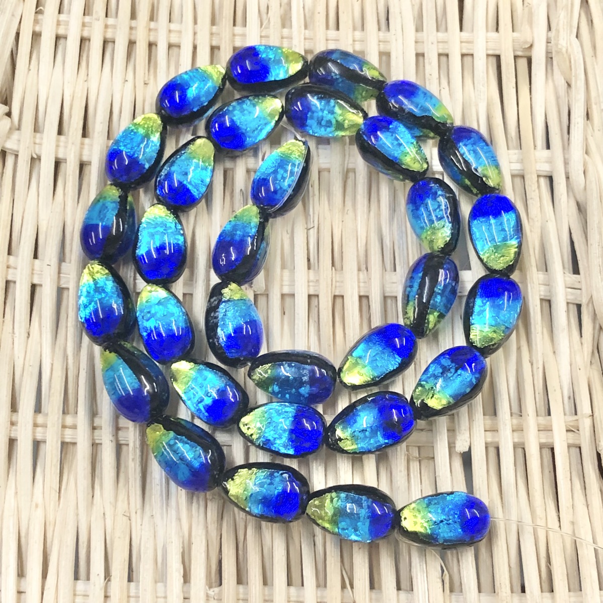 ケラママリン しずく 雫 ホタルガラス 8mm*12mm 連売り 40cm とんぼガラス とんぼ玉 沖縄 慶良間諸島 蓄光 夜光タイプ