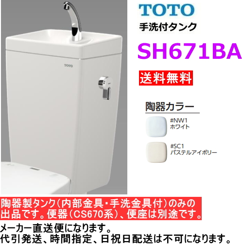 TOTO SH671BA 【手洗付タンクのみ】 *便器(CS670系)・便座は別途です。 送料無料