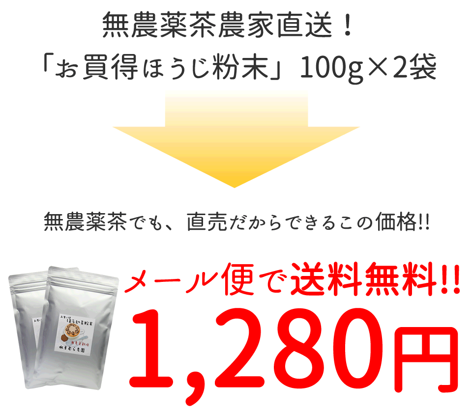お買得ほうじ茶粉末 国産無農薬茶 100g×2袋 無添加 メール便送料無料