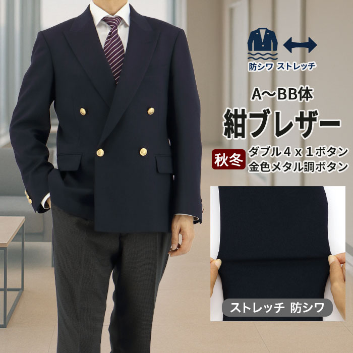 紺ブレザー メンズ ダブルブレスト4x1ボタン 金色メタル風ボタン 秋冬 ジャケット 2FGC35-11