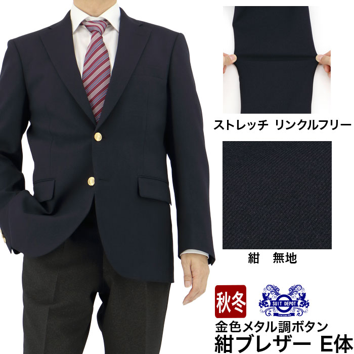 | 大きいサイズの2ボタン紺ブレザー ※ポケットチーフは、付属いたしません。 |