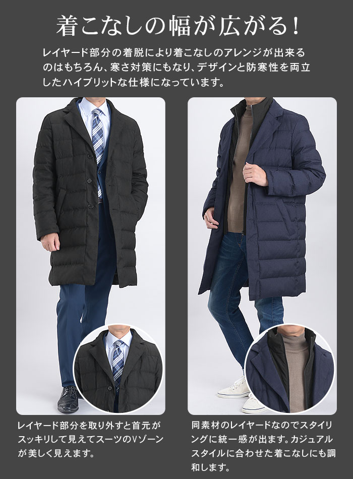 | ダウンコート カジュアルコート ビジネスコート 秋冬物 WARM BIZ (ウォームビズ) メンズ (男性用・紳士用) スーツコート コートメンズ オフィススタイル カジュアル MARUTOMI マルトミ ジャケット フェイクレイヤード 防寒 あったか 暖かい |