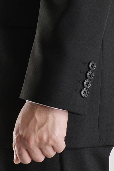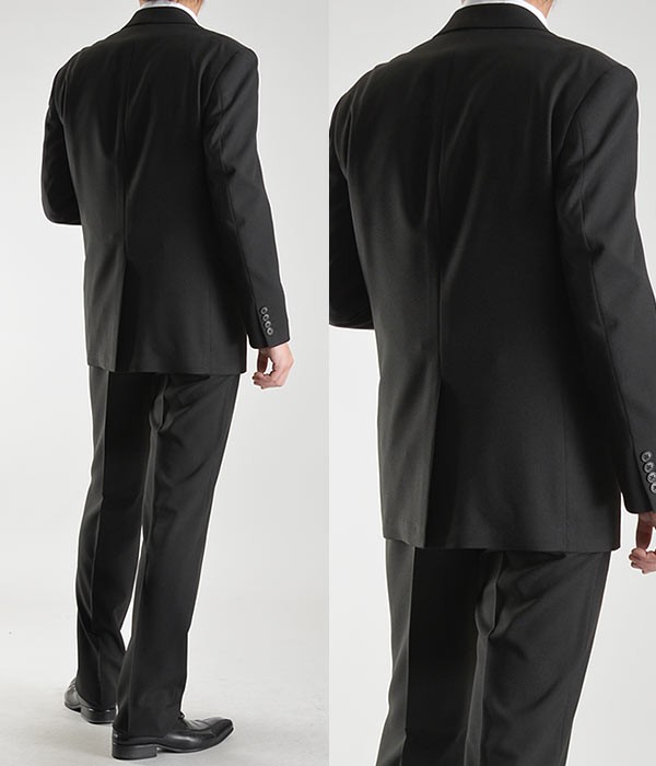オールシーズン対応で、シワになりにくいポリエステル素材を使用した丈夫で軽いフォーマルスーツ。
