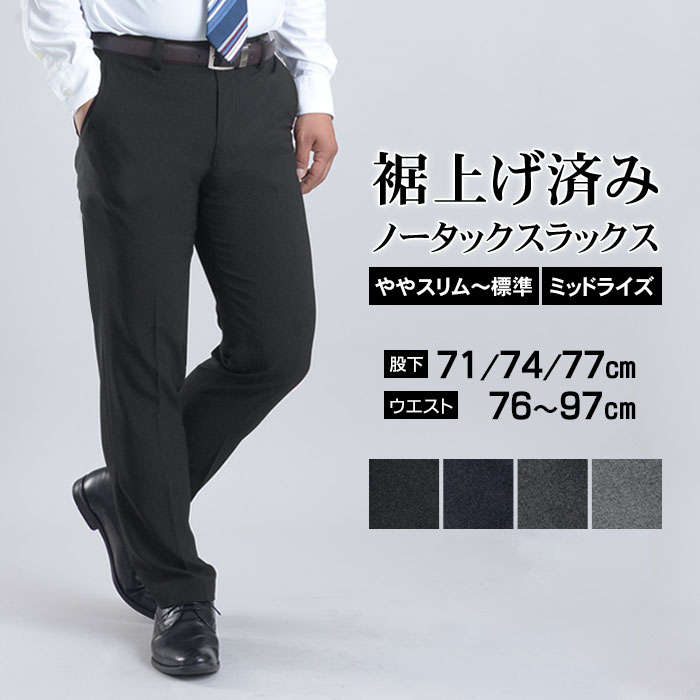 | 裾上げ済み ノータックパンツ ミッドライズ ストレートパンツ ウォッシャブル仕様 防シワ |