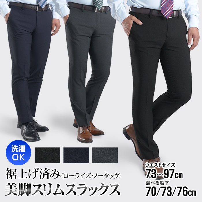 | 裾上げ済み ノータックパンツ ストレートパンツ ウォッシャブル仕様 防シワ |