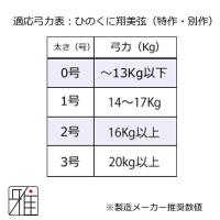 ひのくに翔美弦は、麻弦ひのくに 大川弦の名で多くの弓道家の皆様に愛用されておりましたが、近年は良質の麻、入手難からその製造の縮小を余儀なくされておりまた。ひのくに翔美弦はその伝統と技法を受け継いだまったく新しい弓弦です。廉価で良質の麻、入手困難な今日これに代わる新しい弓弦の素材として強くて、軽くしかも伸縮率の非常に低い特殊繊維を、古来の“くすね”を使用し一本一本丁寧に仕上げました。“くすね”を使用することは大変手間の要ることですが、日本弓道の弓弦を作るのには最適であると考えております。