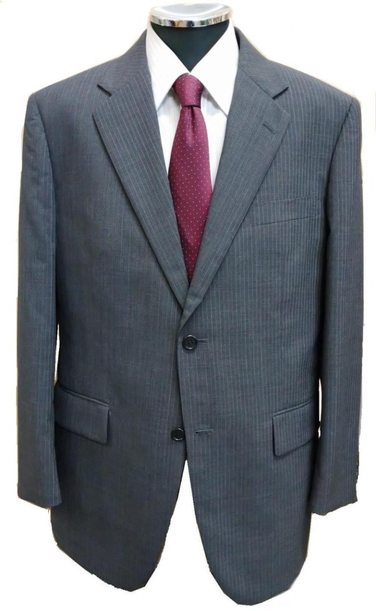 .スーツの柄はグレーの生地にストライプ柄が入っています。