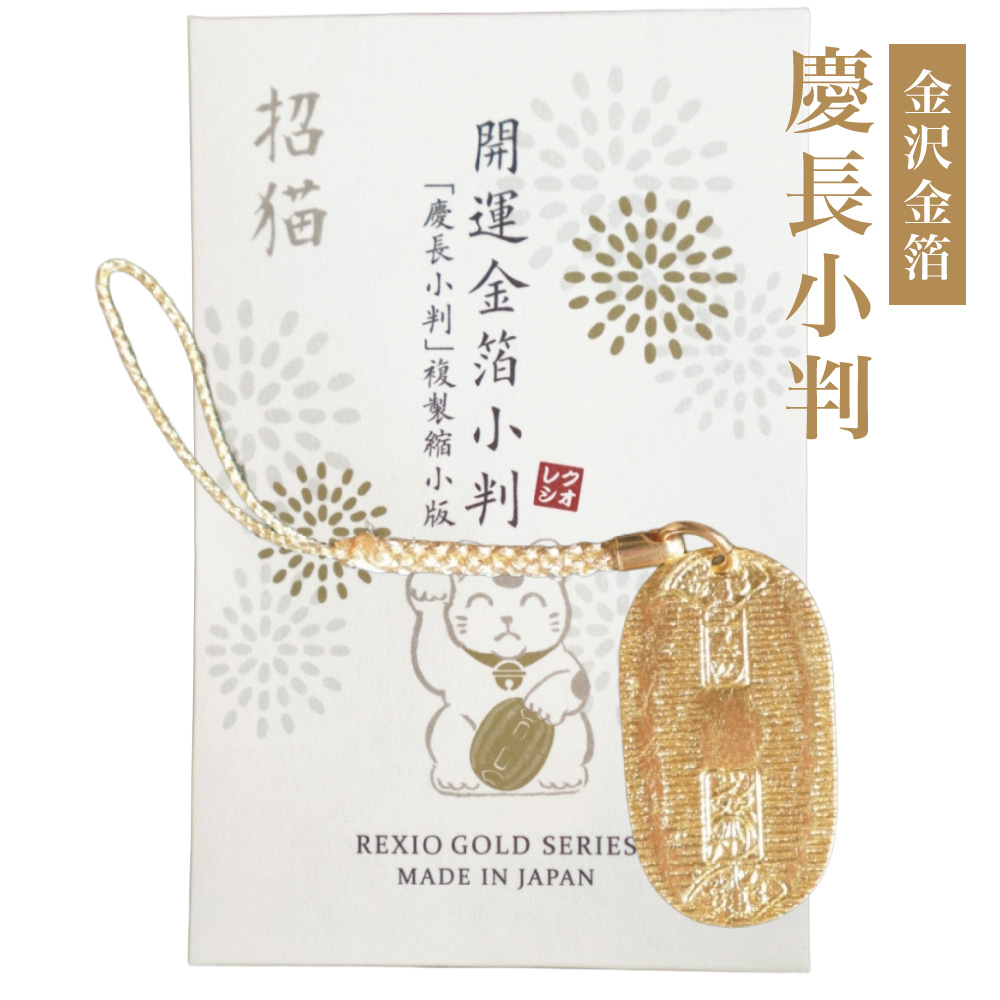 慶長6年(1601年)、徳川家康のもとで発行された日本初の統一金貨「慶長小判」。 その歴史的価値と美しさを、金沢伝統の金箔で精巧に再現しました。 格式ある輝きは「金運招福」の縁起物として人気。 お部屋に飾るほか、財布に忍ばせて福を呼び込むお守りとしてもおすすめです。