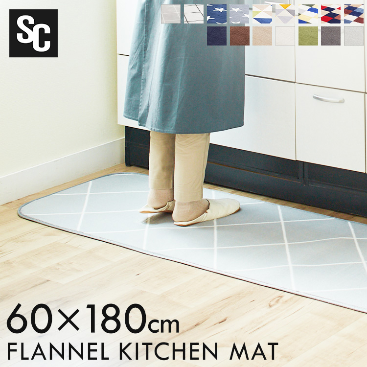 肌触りの良いフランネル地のさらふわ洗えるキッチンマット。