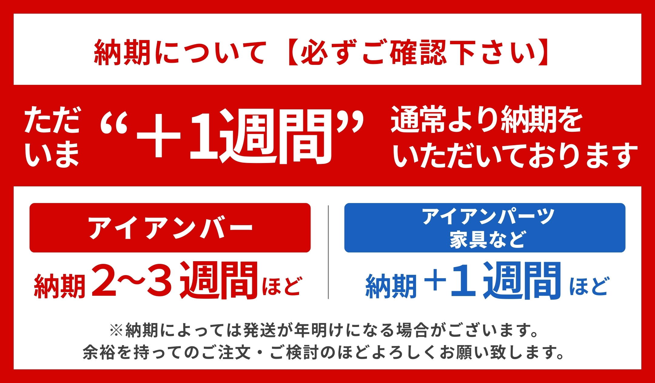 ※長期休暇をまたぐ場合は+1週間ほど納期をいただきます。