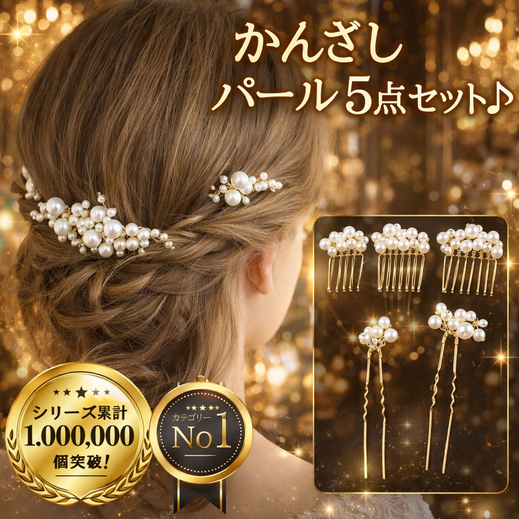 パールを丁寧に繋げたヘアアクセサリー5点セット