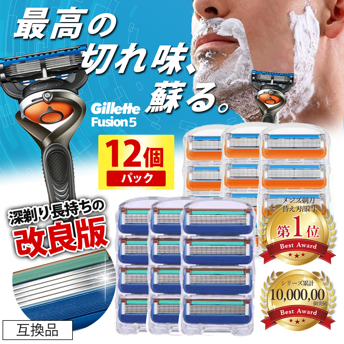 互換品 ジレット替刃 ジレット フュージョン 替刃 替え刃 男性 メンズ 互換性 電動 パワー 5枚刃 プログライド プロシールド 髭剃り gillette カミソリ 12個