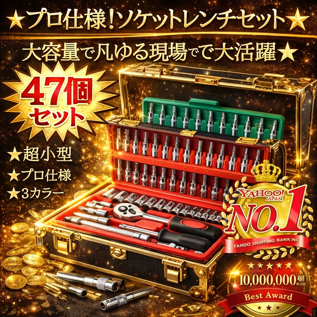 ホームセンターなどで販売されております工具セットはラチェット・ソケットのみのセットが多いですがこちらの工具セットはトルクスなどの工具もセットになっておりますのでDIY時に活躍すること間違いなしです!