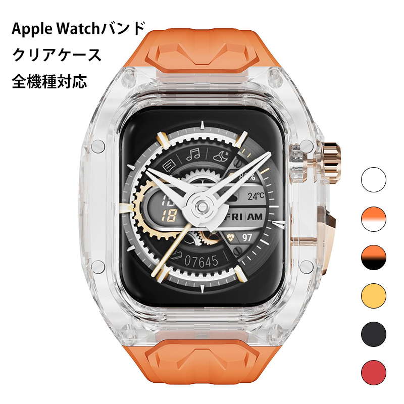 アップルウォッチ バンド メンズ 一体型 ケース apple watch シリコン ラバー クリア ケース カバー 本体保護 applewatch series 11 10 9 8 7 6 5 4 SE ultra