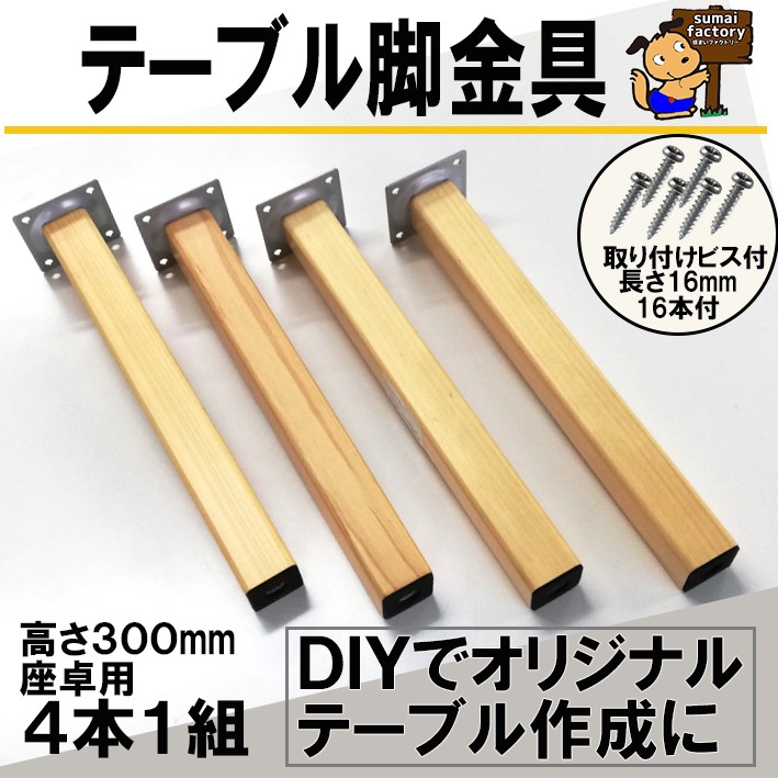 スマートレグ 角脚 300mm 4本セット 取付ビス付 座卓用 脚金具 KSW-3230